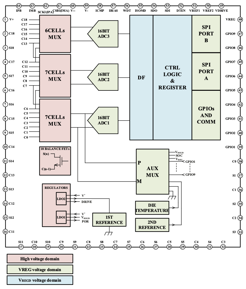 電芯電壓:0~5V GPIO端口:9個(gè) 通訊方式:SPI(支持雙向isoSPI) 均衡模式:外部被動(dòng)均衡 分辨率:0.1mv 全溫范圍誤差:±3mv 工作溫度:-40~125℃ 待機(jī)電流:10uA 封裝形式:LQFP64-EP 應(yīng)用行業(yè):儲(chǔ)能,電力,工業(yè)控制,無(wú)人機(jī) 產(chǎn)品詳情