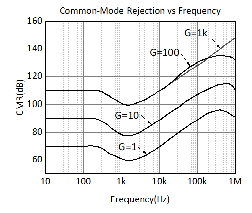 MTI0326具有靈活的增益設(shè)置,且精度極高,因此可以廣泛應(yīng)用在對直流精度有較高需求的應(yīng)用中。出色的長期穩(wěn)定性、極低的1/f噪聲、極低的溫漂確保在產(chǎn)品的整個使用壽命中均具有極高的直流精度。但由于電路原理為電流拷貝,變化增益時,R1值越小輸入失調(diào)電壓越小,共模抑制比越好。建議根據(jù)實際情況選擇盡可能低的R1值。但VIN/R1不能超過250uA。